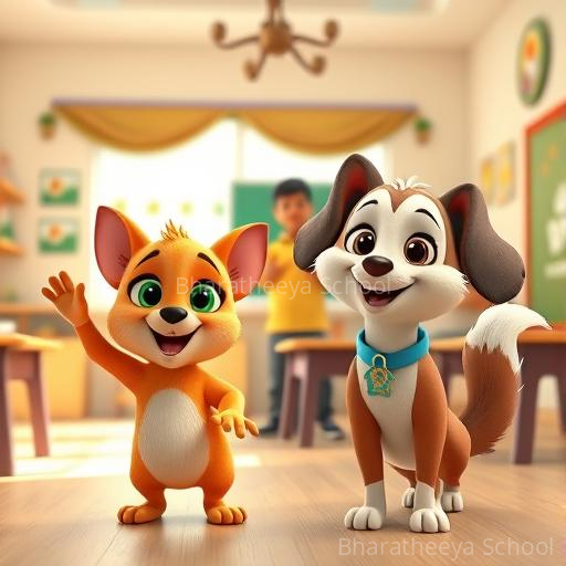 From that day on, Makku and Rocco become regular students, loved by everyone. Rashmi and the children teach them many new things, and the watchman understands their kind hearts. The school becomes a place of joy, friendship, and discovery. Makku and Rocco learn that being brave and kind makes every day special, and they happily continue their journey of learning and fun, knowing they are part of a big, caring family.