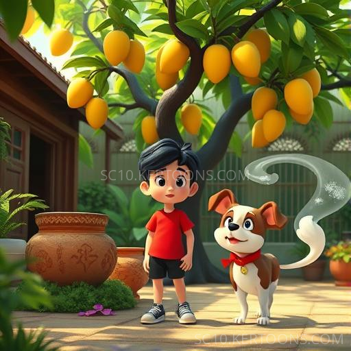 Deep in the quiet backyard, Ah Boy spots an old, dusty clay pot half-buried under a mango tree. As he lifts it, a mischievous spirit appears with a giggle, swirling in a cloud of sparkling mist. The spirit tries to trick Ah Boy into giving up the treasure, playing tricks like making the ground shake and the wind howl. Ah Boy feels a mix of surprise and worry, but he remembers his grandma’s words about honesty. With Mimi, his brave little dog, by his side, he decides to face the spirit with courage and kindness, determined not to be fooled by tricks but to find the true magic inside himself.
