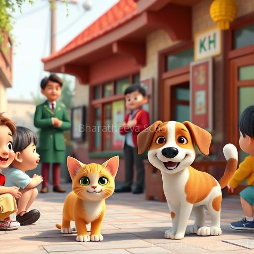 On a bright, sunlit morning in a lively Karnataka village, Makku the ginger cat and Rocco the cheerful beagle dog peeked over the village fence, their eyes sparkling with curiosity. They had heard about the colorful school with its cheerful children and wondered what it would be like to learn and play there. Their hearts fluttered with excitement and a tiny dash of nervousness as they imagined stepping into a world of stories and songs, dreaming of becoming brave explorers of knowledge.
