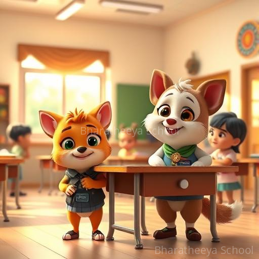 From that day on, Makku and Rocco become regular students, loved by everyone. Rashmi and the children teach them many new things, and the watchman understands their kind hearts. The school becomes a place of joy, friendship, and discovery. Makku and Rocco learn that being brave and kind makes every day special, and they happily continue their journey of learning and fun, knowing they are part of a big, caring family.